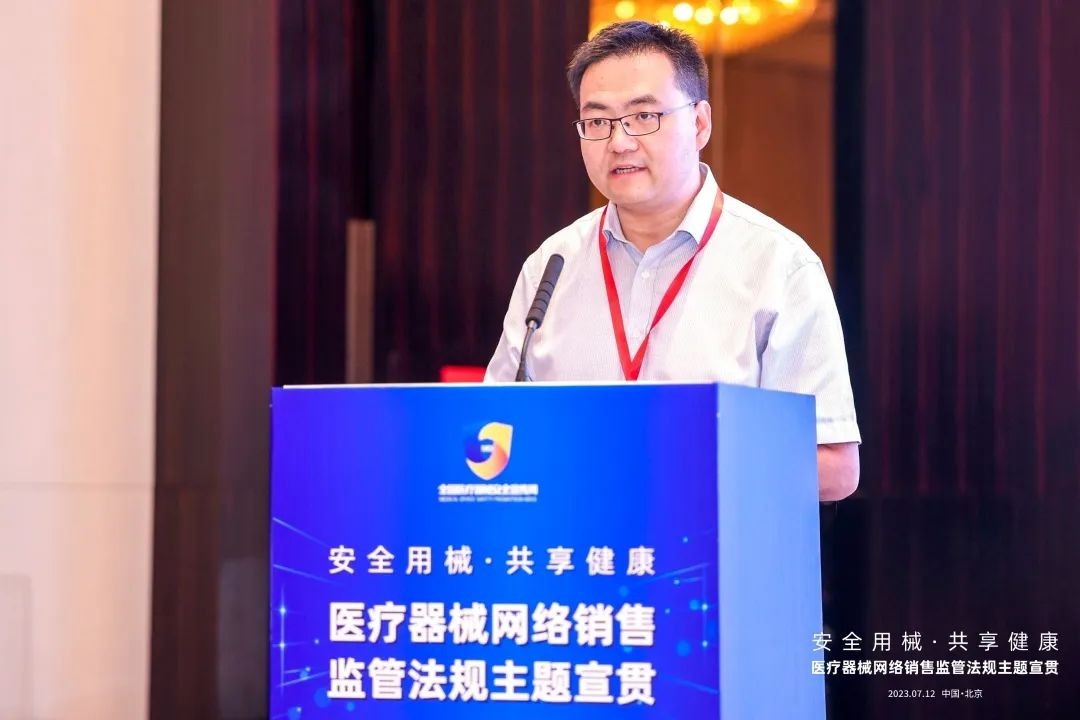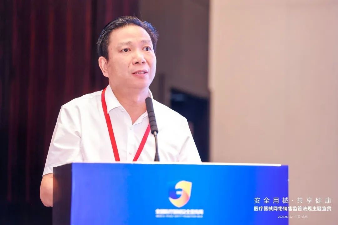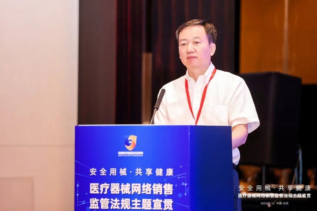 国家药品监督管理局器械监管司司长王者雄进行致辞讲话。他表示,医疗器械网络销售是数字经济发展的必然结果。近年来,国家药监局坚持“线上线下一致”管理原则,持续完善法规体系建设,不断创新监管技术手段,坚持聚焦问题导向,严查违法违规行为。2022年全国药械网络销售市场规模达2924亿元,预计2023年将超过3500亿元,药械网络销售行业保持快速发展态势。防范医疗器械网络销售质量安全风险,保障群众网购医疗器械质量安全是涉及风险管理、科学监管、社会共治的大课题,需要监管部门、第三方平台企业、网络销售企业等多方协同、合力共治。