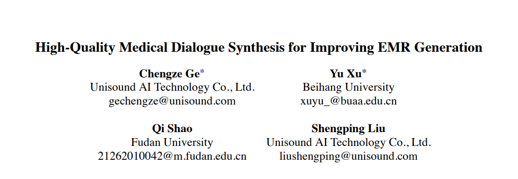 近日,自然语言处理(NLP)领域国际权威会议 ——2025 年计算语言学与自然语言处理国际会议(EMNLP 2025)公布论文录用结果,云知声提交的《面向门诊病历生成的高质量医患对话合成技术》(《High-Quality Medical Dialogue Synthesis for Improving EMR Generation》)成功入选 Industry Track(工业赛道)。这一成果不仅是国际学术界对云知声技术实力的高度认可,更标志着其在门诊病历生成领域实现重大技术突破,为中国医疗 AI 企业在全球垂直领域创新树立标杆。